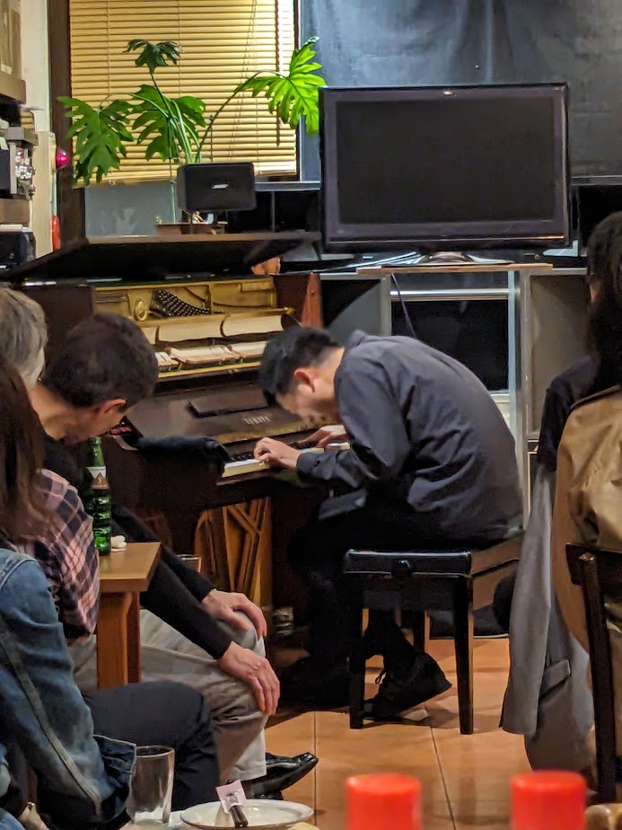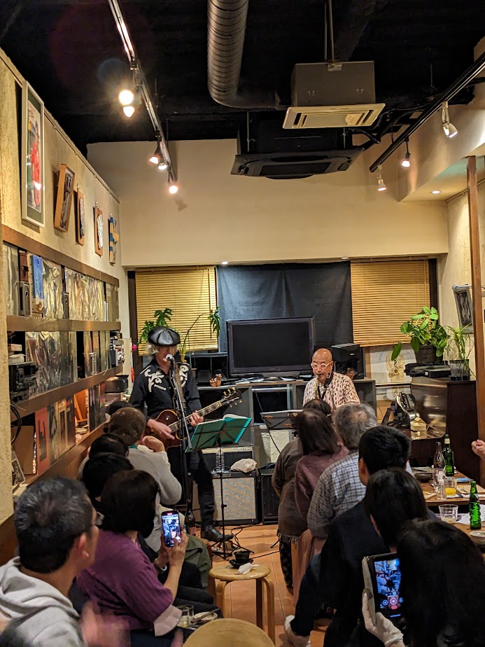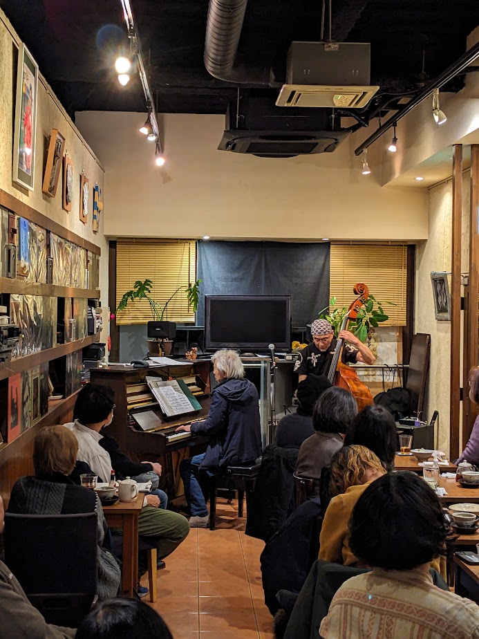 ライブ時はミニマム・チャージ1500円制をとらせて頂きます。 (お一人様の飲食代が1500円未満の場合、注文数に限らず1500円のご請求となります。食事のみはお断りします)プラス、ミュージック・チャージを設定しておりませんので、演奏者に1000円以上のカンパをお願いします。 演奏終了時に従業員が袋を持って客席を廻りますので、そこに1000円以上の投げ銭を入れてください。 お飲み物とおつまみ最低金額1500円プラス、カンパ最低金額1000円。 入れ替え制ではありません。